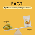 Fresh mango is freeze dried at low temperatures to remove moisture while preserving flavour, colour, and nutrients. The result is a light crunch and an intense mango taste in every bite.